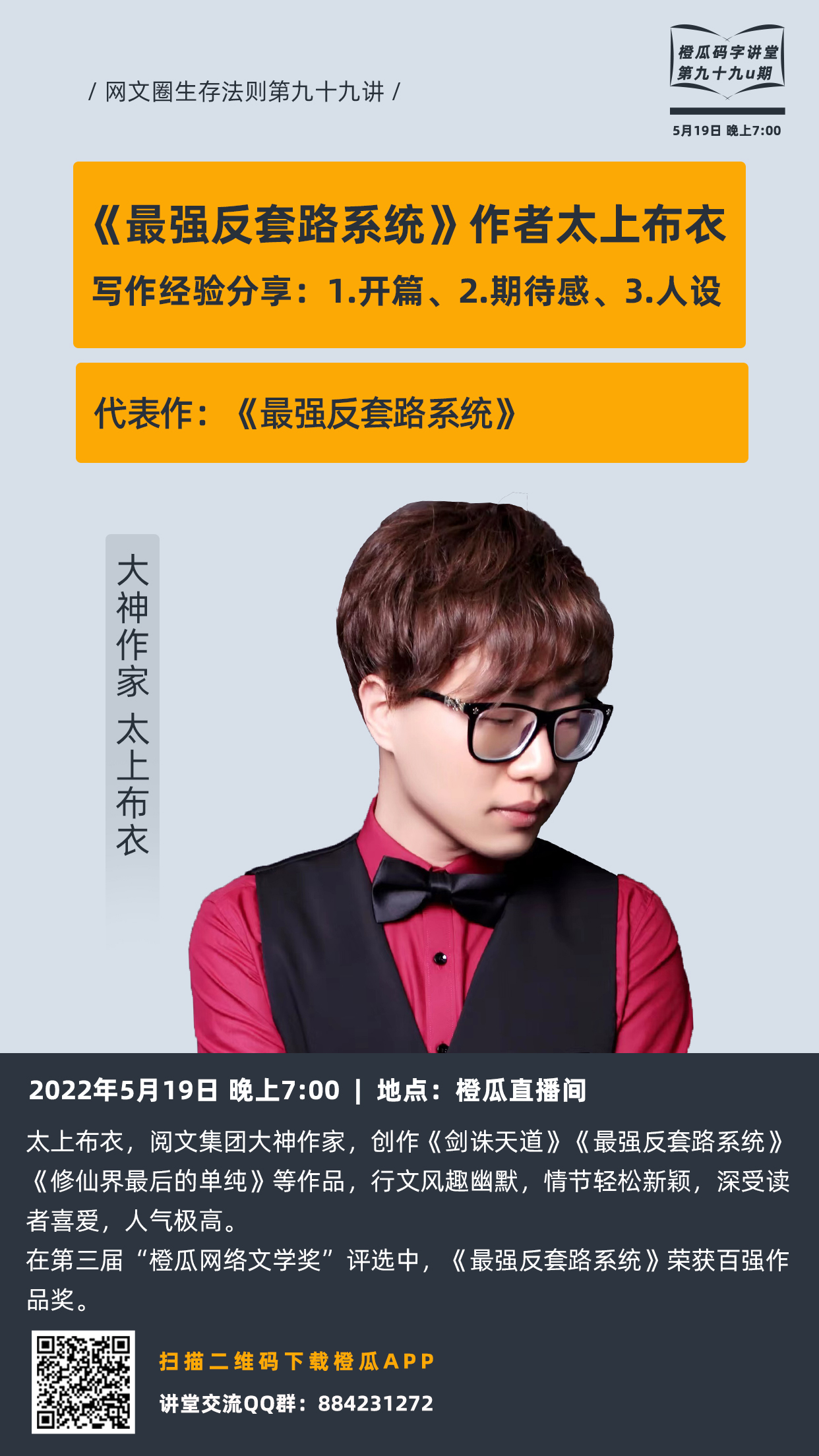 《最强反套路系统》作者太上布衣写作经验分享:1.开篇。2.期待感。3.人设
