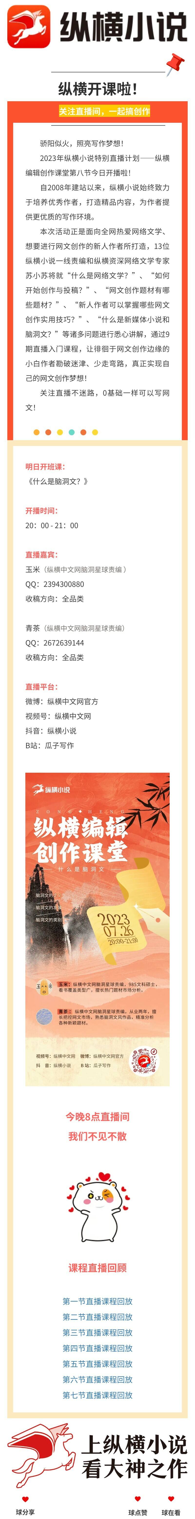 直播预告 | 纵横编辑创作课堂,第八节今日开播!