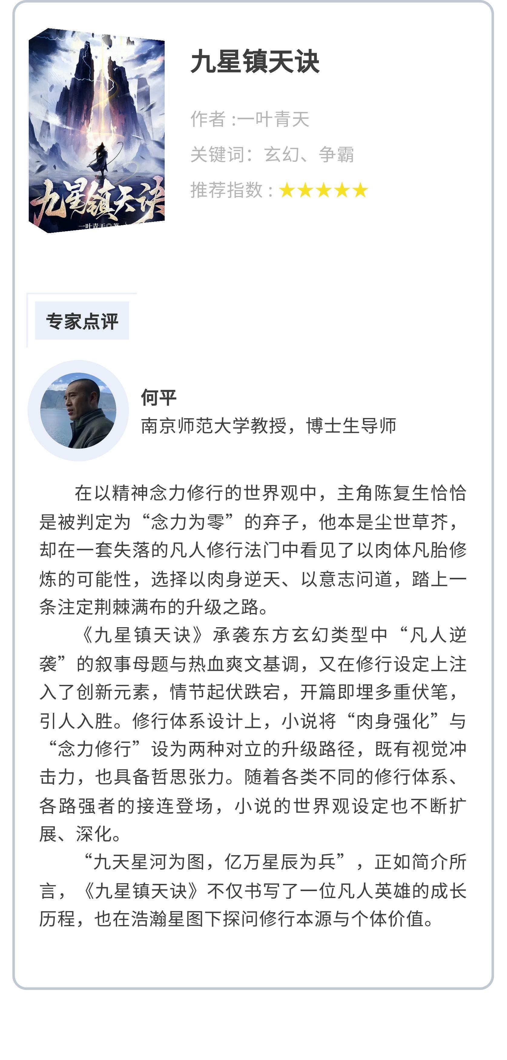 本栏目由中国作家协会网络文学中心指导,咪咕数字传媒有限公司主办、扬子江网络文学评论中心协办,邀请行业资深专家精选和点评网络文学作品。