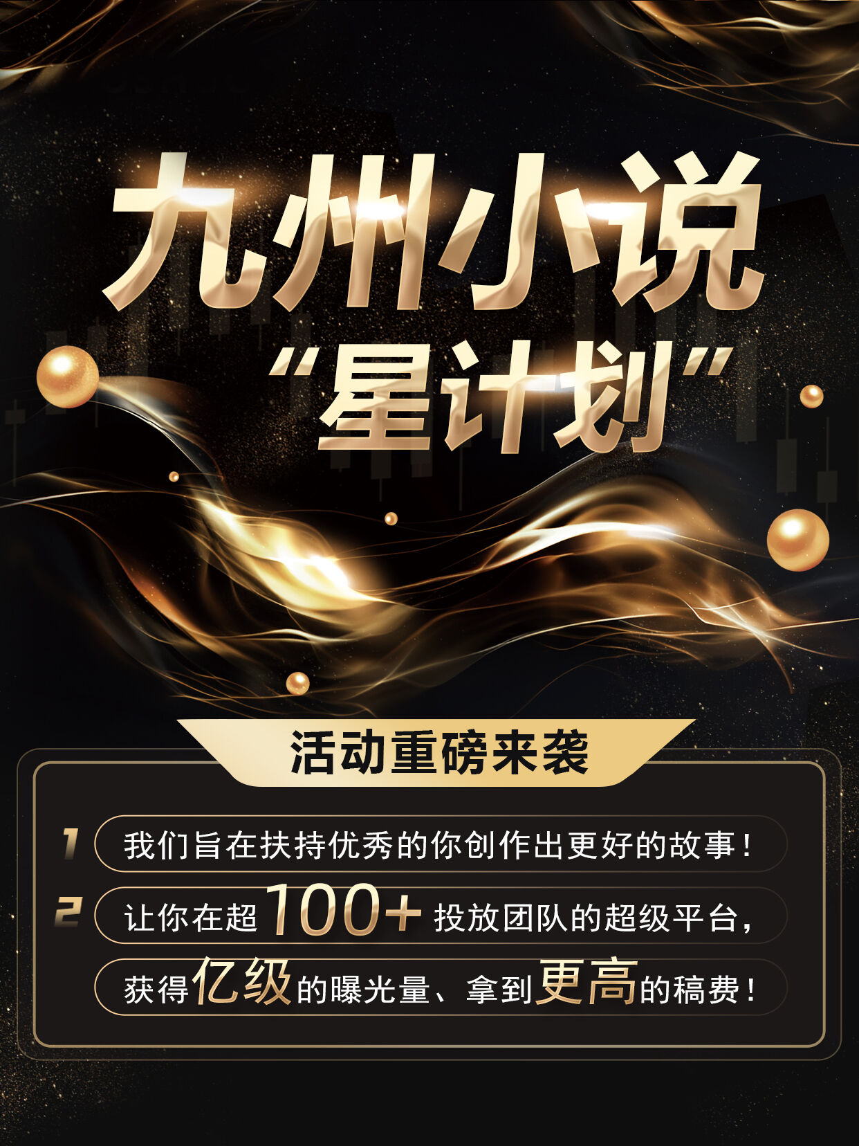 九州小说“星计划”活动重磅来袭,我们旨在扶持优秀的你,创作出更好的故事!