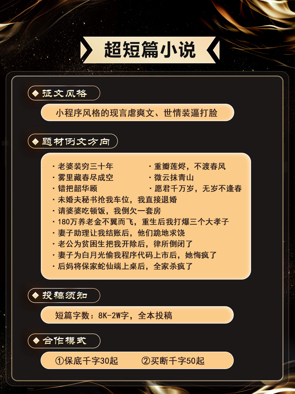 超短小说作者,签约新书一次性发放奖励1000