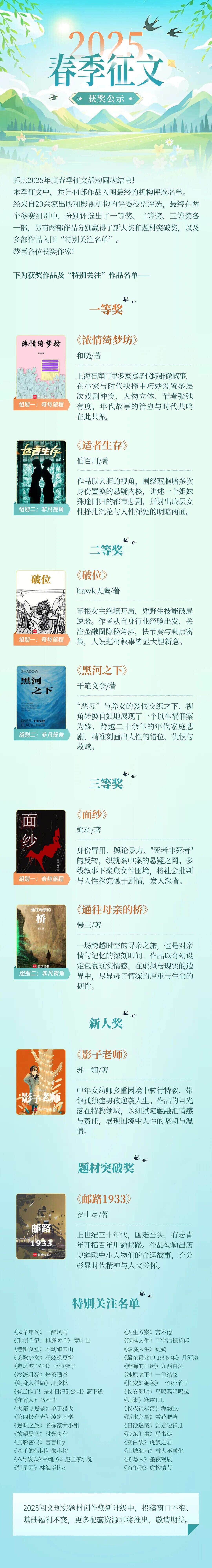 阅文现实赛道升级啦!另:春季征文获奖名单已经出炉,在文章末尾。