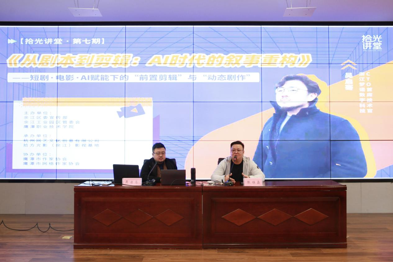 “拾光讲堂”系列作为区域文化创意人才培养的重要平台,已逐步形成从网文写作、AI编剧到影视制作的课程体系。本期活动进一步强化了“科技+艺术”的融合导向,为鹰潭乃至更广范围内的数字内容人才培养、产业项目孵化提供了前瞻思路与实践支持。