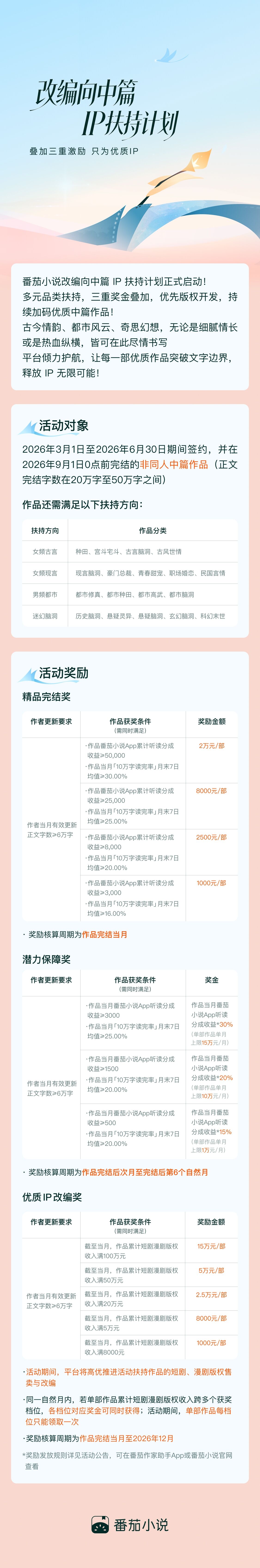 可点击【改编向中篇 IP 扶持计划重磅上线!】了解活动更多详情!