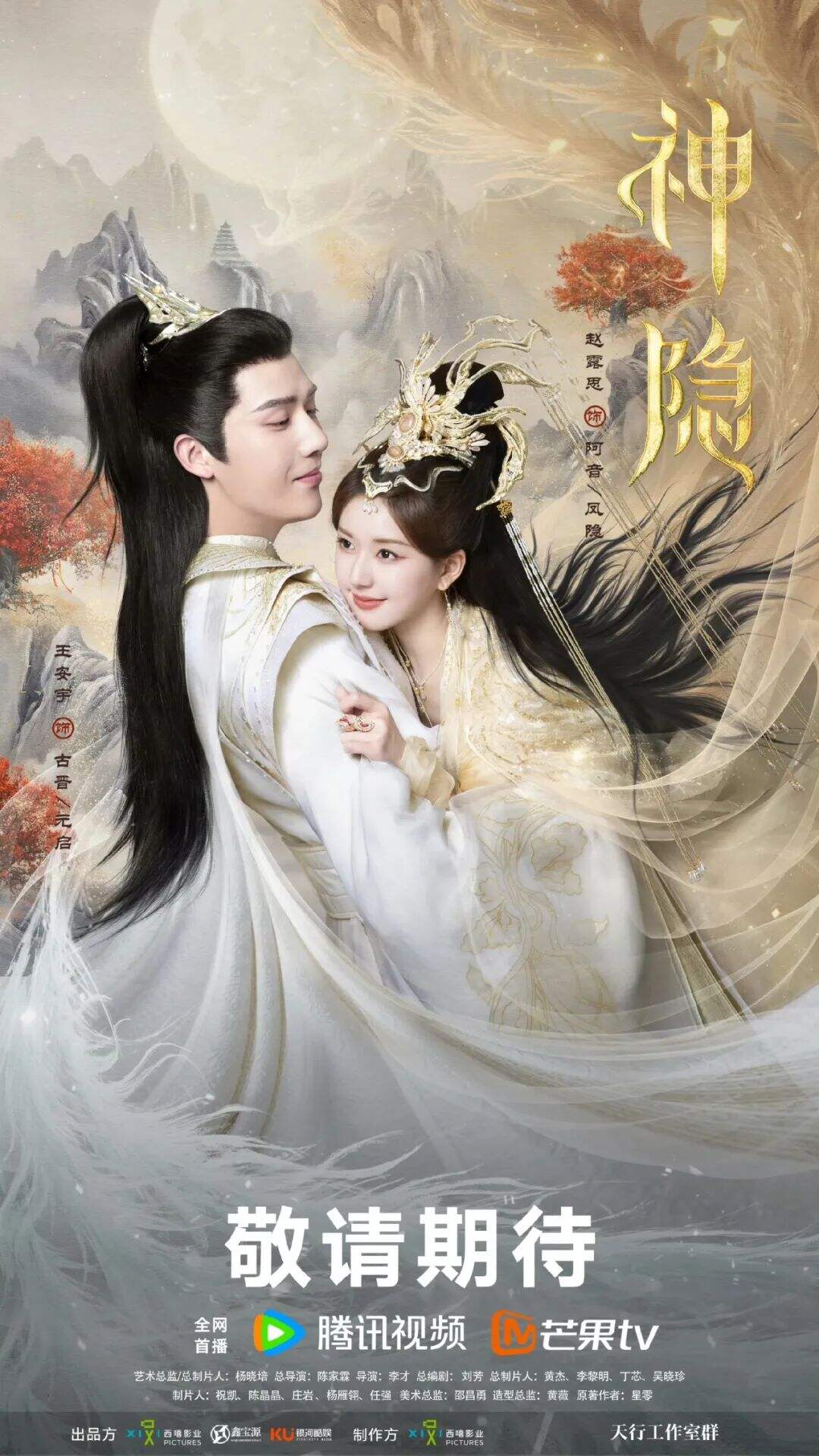 《神隐》改编自星零的同名小说,该剧由赵露思、王安宇领衔主演,于2023年12月11日在腾讯视频、芒果TV播出。该剧讲述了真神之子古晋与水凝兽阿音因一场意外相识,共同走上寻找仙元之路,历经重重险阻,屡次挫败反派青霖及其属下的阻挠,助力凤隐涅槃回归,共同拯救三界苍生,并在此过程中收获爱情、友情、亲情的故事。星零,知名网文作家,代表作有《帝皇书》《宁渊》《上古》等。